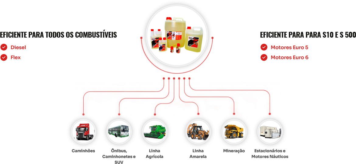 • Reduz emissões de particulados, CO², Nox, e fumaça preta.