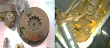 Componentes do sistema de injeção após ação de água livre causando oxidação, desgaste, e depósitos de lodo.